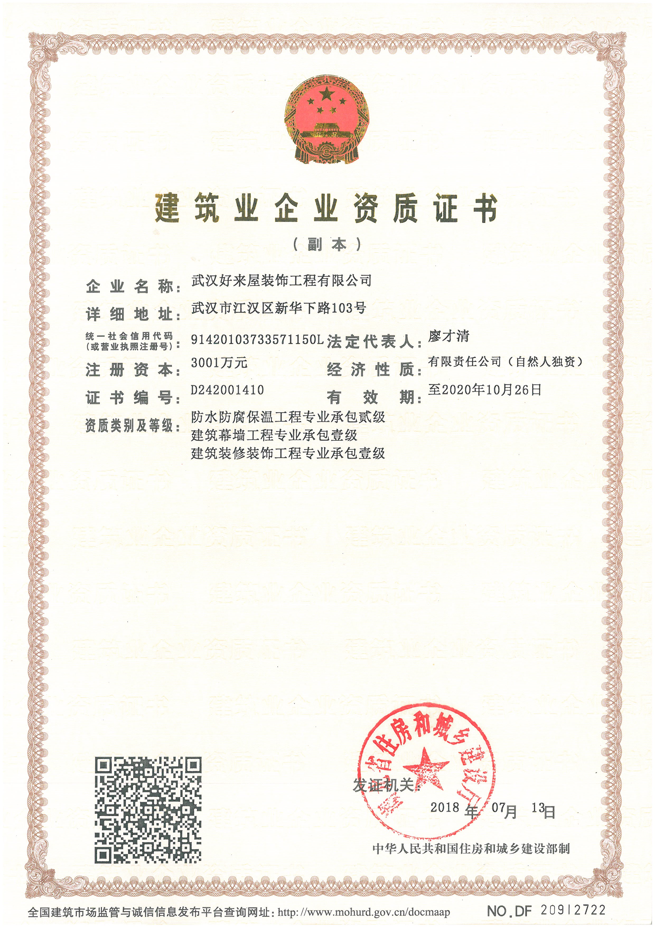 好來屋裝飾防水防腐保溫工程專業(yè)承包貳級資質(zhì)順利通過,公司防水事業(yè)部將開啟新的征程。